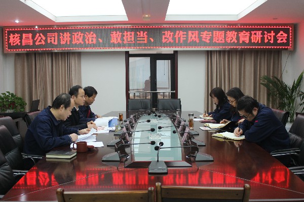 1月14日,核昌公司黨委在公司小會議室組織公司領導班子成員召開2019年一月份黨委中心組學習(擴大)會議暨講政治、敢擔當、改作風專題教育研討會。會議由公司黨委委員、總經理楊昭主...