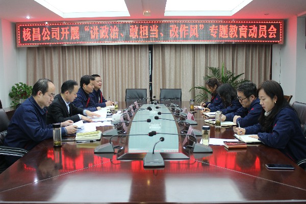 12月17日下午,核昌公司黨委根據集團公司黨委的安排部署,在公司小會議室召開了“講政治、敢擔當、改作風”專題教育動員會,核昌公司全體班子成員參加會議,會議由黨委書記王超宏主持...