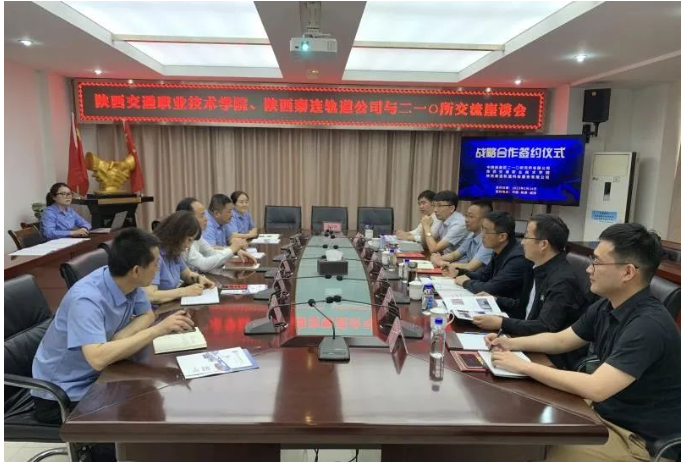 5月24日,陜西交通職業(yè)技術(shù)學(xué)院黨委委員、副院長(zhǎng)劉晶、陜西秦連軌道科技服務(wù)有限公司董事長(zhǎng)孫琪一行到中陜核集團(tuán)二一〇研究所交流座談,并簽署戰(zhàn)略合作協(xié)議。二一〇研究所董事長(zhǎng)王超宏、總經(jīng)理李偉、副總經(jīng)理?xiàng)钇G和相關(guān)部門負(fù)責(zé)人出席座談會(huì)。