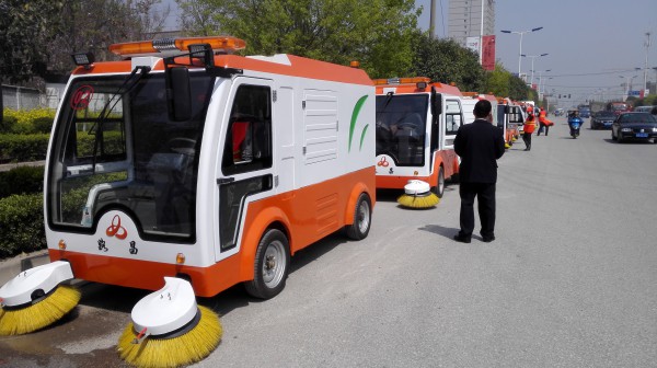 核昌公司交付咸陽市公路局11臺新能源純電動清掃車