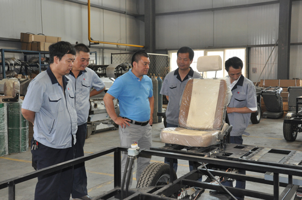 首先,王軍杰董事長在核昌公司楊昭副總經(jīng)理等人陪同下參觀了生產(chǎn)車間,詳細(xì)了解了目前的生產(chǎn)情況,并就電動清掃車生產(chǎn)進行了詳細(xì)交流。