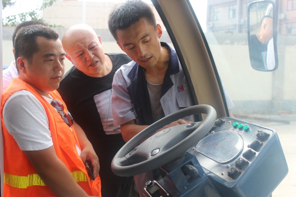 交付儀式舉行完后,核昌公司專業(yè)技術(shù)人員為咸陽市交通運輸局工作人員介紹了電動清掃機的車體結(jié)構(gòu)和操作面板,使工作人員對清掃機有了簡單的了解。之后,在公司大會議室召開新能源清掃機培訓(xùn)會,為操作人員詳細講解了清掃機的主要參數(shù)、操作方法和應(yīng)注意的問題,并在會后進行實地操作演示,解答操作人員的疑問,使操作人員更加快速、安全的熟悉操作方法。