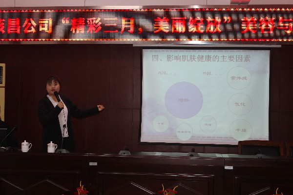 活動中,核昌工會特邀請兩位養生顧問結合PPT,用通俗易懂的語言,給大家講授了基礎皮膚的護理、五臟六腑的病理變化以及女性心理變化的美容與養生健康知識。女職工們紛紛與兩位顧問還進行了現場互動交流,結合自身情況向顧問進行咨詢,充分調動了女職工的積極性,現場氣氛活躍。講座結束后,核昌工會為女職工精心準備了節日禮物,以鼓勵女職工在今后的生活工作中更加努力向上、美麗健康。
