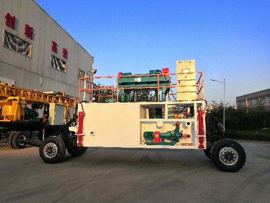 NCT-10泥漿不落地裝置集整合、造漿、收集、凈化分離、泥漿閉路循環在一臺拖車之上,并進行自動控制,搬遷方便、省時省力,很好的解決了巖芯鉆探泥漿處理問題。該機的使用,無需開挖泥漿坑,回填泥漿坑,施工完成后,撤走裝備,現場只留下一孔,十分干凈,既可以HXY-1600拖車鉆機無縫對接也可以與落地式鉆機對接,真正做到綠色勘查。