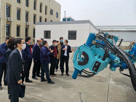 會后,王董帶領(lǐng)任總一行參觀精密主軸、環(huán)保清掃車、教育實訓(xùn)設(shè)備、地質(zhì)裝備等生產(chǎn)車間,并觀看了全液壓錨固鉆機(jī)的空載演示。
