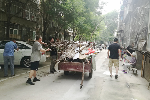 物業(yè)全體工作人員明確任務(wù)、分工合作,充分發(fā)揚(yáng)不怕臟、不怕累的精神,拿起掃把、鏟子對(duì)小區(qū)衛(wèi)生死角進(jìn)行仔細(xì)清掃,他們?nèi)宄扇海s草、撿垃圾、掃落葉、清理樓道雜物,干的熱火朝天,汗流浹背,大掃除活動(dòng)井然有序的開(kāi)展。