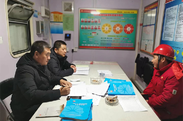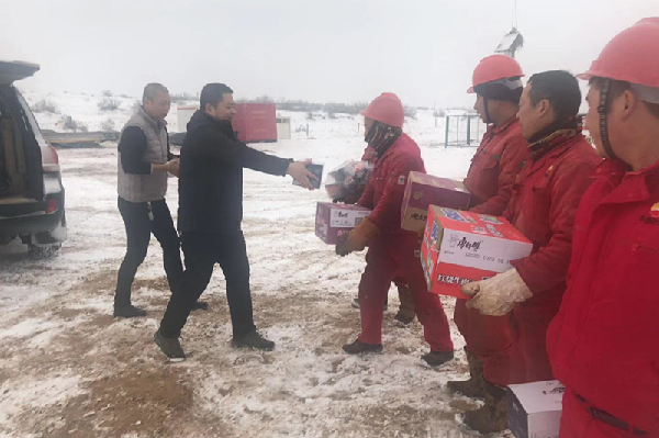 首先,副總經理李偉帶領檢查組一行向惡劣環境下仍堅持在野外作業的全體員工表示致敬和親切慰問,并為大家送上了慰問品,細致詢問工作人員的生活及身體狀況,提醒駐場工作人員要做好防寒保暖、注意安全、嚴防安全事故的發生。